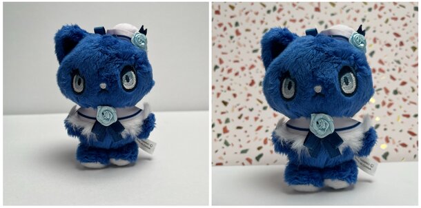 Next, get some backdrops. In professional studios, fabrics like canvas and muslin are used as backgrounds in portraits and product shoots. For plushies, take inspiration from the character’s colors, themes, etc. and get scrapbook paper or even some interesting gift wrapping paper. You can even use posters from the show or game your plushie’s from.