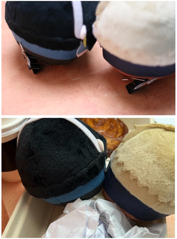Use clips or whatever you have lying around to keep your plushies in the right position