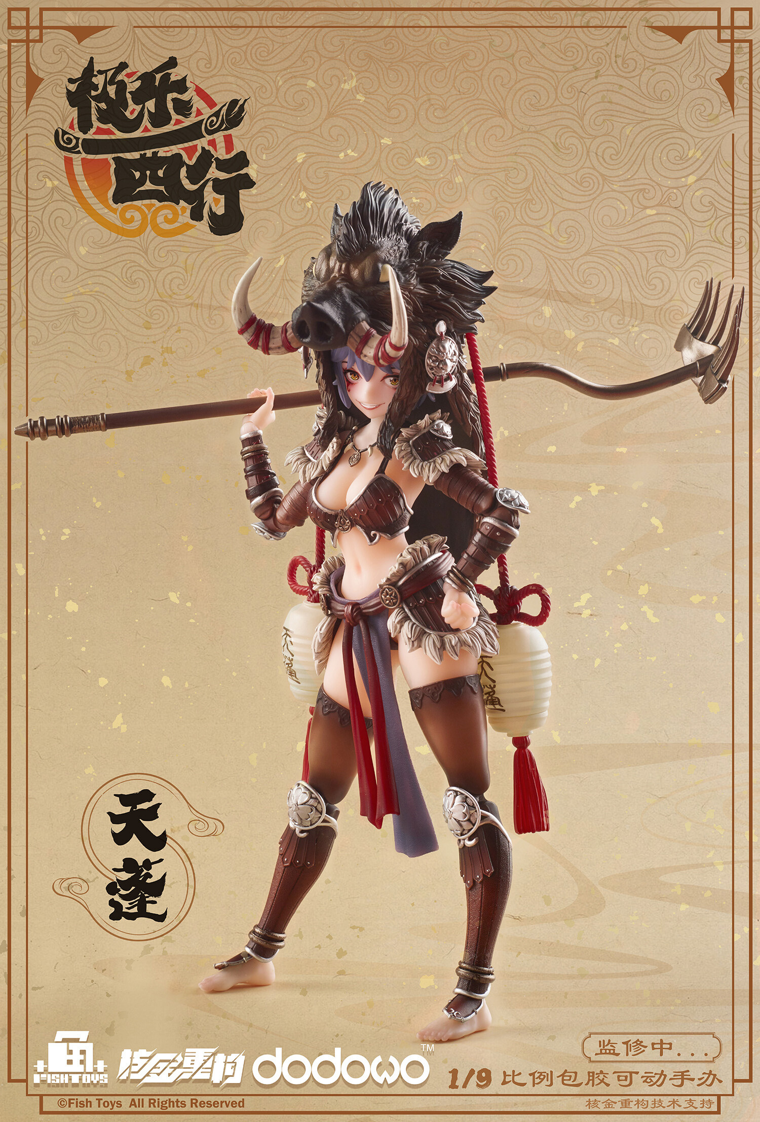 Planned and made by Fish Toys, here comes the original 1/9 scale action figure of "Extreme Bliss Westward Journey - Tian Peng"! Tian Peng is a mischievous and hungry girl. She wears a wild wild-boar hat, and her decorative lanterns actually light up with built-in LEDs! Keep an eye on the "Extreme Bliss Westward Journey " series for more exciting releases in the future!