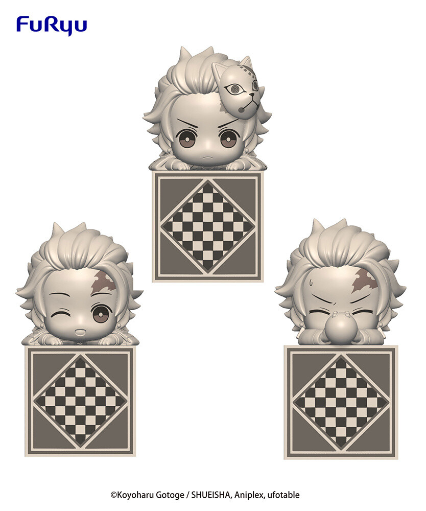 Tanjiro Kamado from the popular anime series Demon Slayer: Kimetsu no Yaiba is hanging out in FuRyu’s Hikkake Figure series! Adorably chibi and packed with charm, he is captured in a lying down pose atop a block featuring a design on the front themed after the checkered pattern on his haori with his little legs hanging off the back. Choose from him in his Demon Slayer look winking cutely, wearing the jinbei and fox mask given to him by Sakonji and looking serious, or wearing his training outfit as he strains to break his gourd.