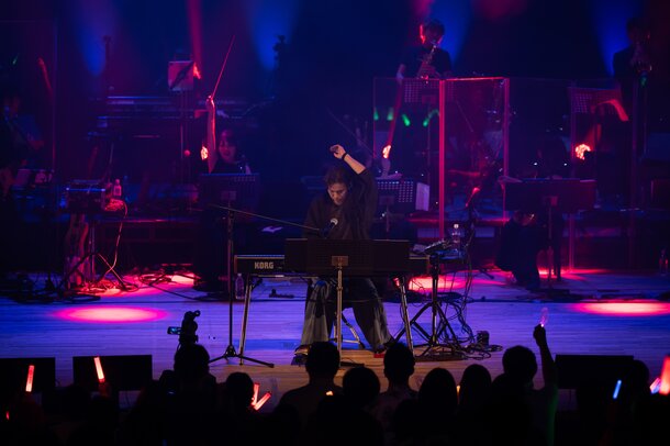 The crowd began cheering as the members of the orchestra took the stage followed by Yuki Hayashi who gave a bow and welcomed everyone once again. He asked the crowd if they wanted to see the real Yuki Kaji and then welcomed him onto the stage as a special guest. As a treat to the crowd, the first song of the night was a song by Soyogi Soyogi that not even Yuki Kaji had heard yet so he was incredibly touched by the performance.