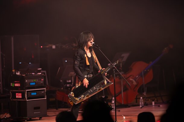 Yasuharu Takanashi took the stage next with his band. As a Kyobansai regular he was definitely a favorite. He started with the Fairy Tail soundtrack and once he began playing the audience stood and began dancing along to the music. He was joined by special guest Kurona, known for his wadaiko playing in Wagakki Band. They continued with the Kinnikuman soundtrack getting the crowd to sing along before moving on to the Naruto medley which was one of the most popular medleys of the night. For this soundtrack he was also joined by a shamisen and an electric flute player who brought even more energy to the stage. As a fun call and response, he got the audience to yell “dattebayo” in tribute to Naruto and kept everyone dancing until the end of his performance.